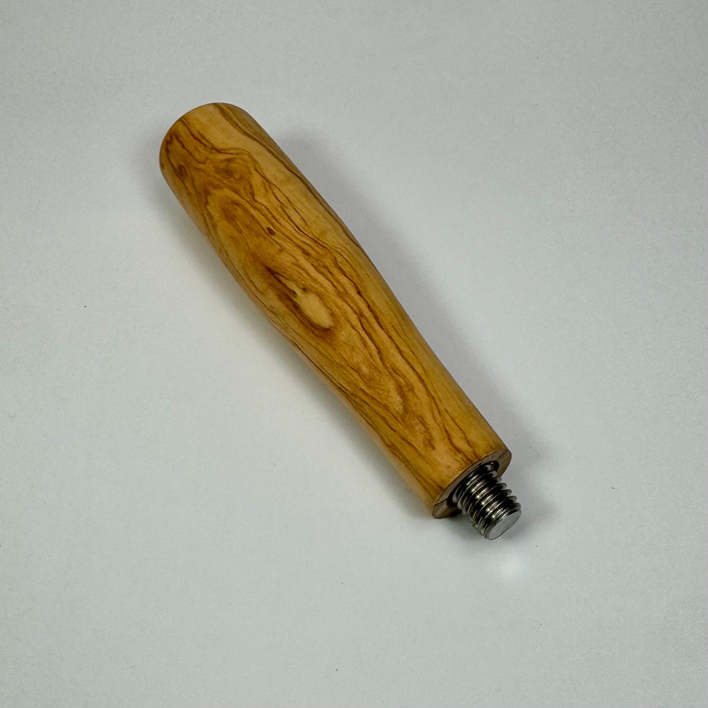 - Griff: massives Olivenholz, handgedrechselt