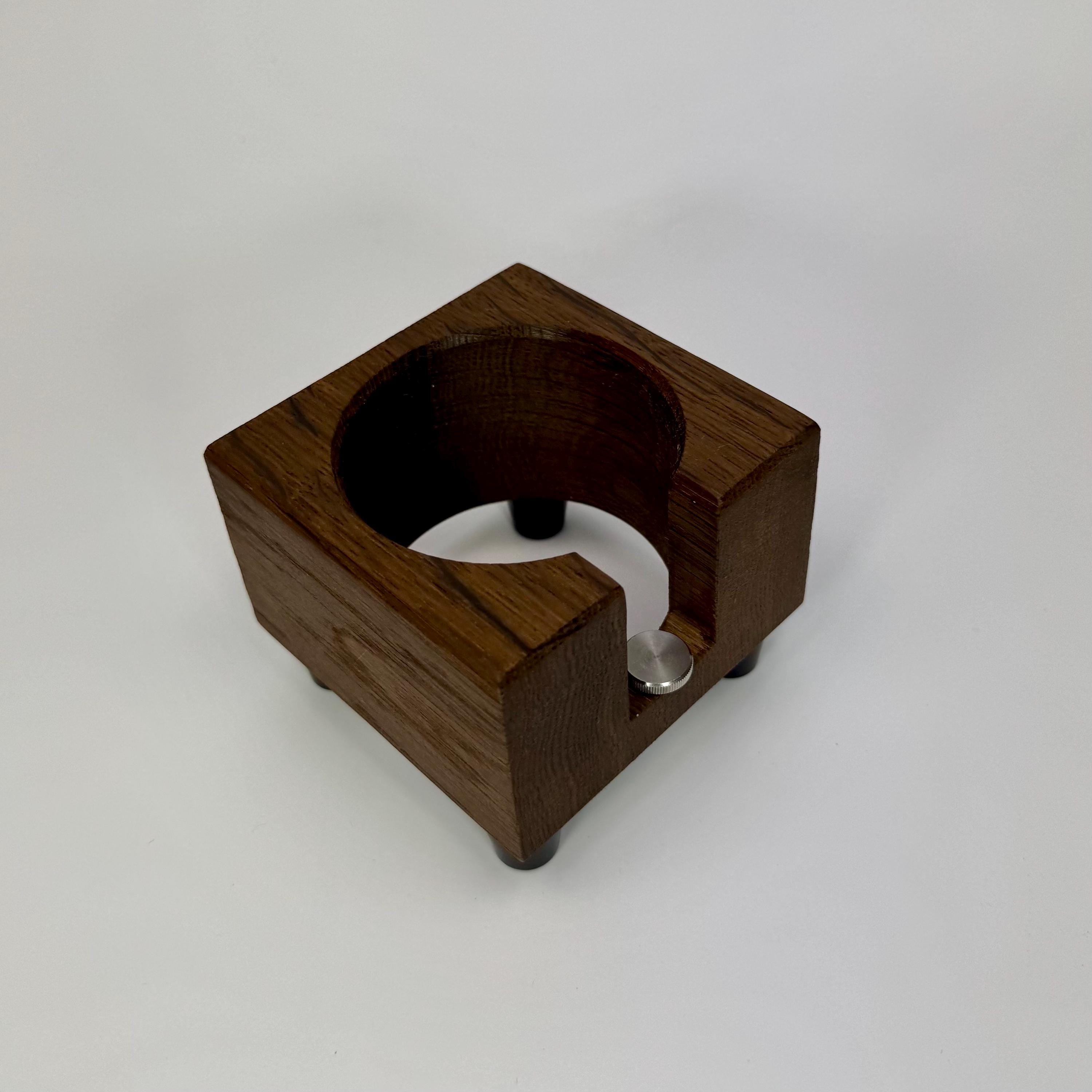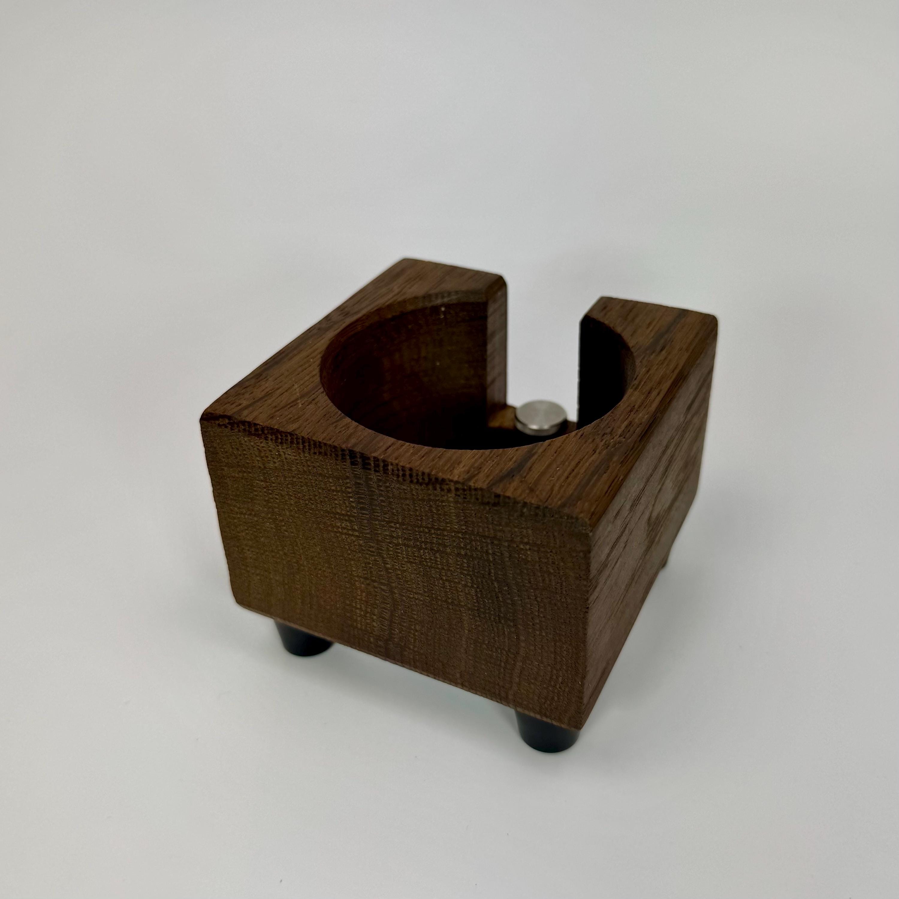 Diese handgefertigte Tampstation aus Räuchereiche ist eine funktionale und hochwertige Lösung zur sicheren Ablage deines Siebträgers und bringt Ordnung in deinen Espresso-Workflow.