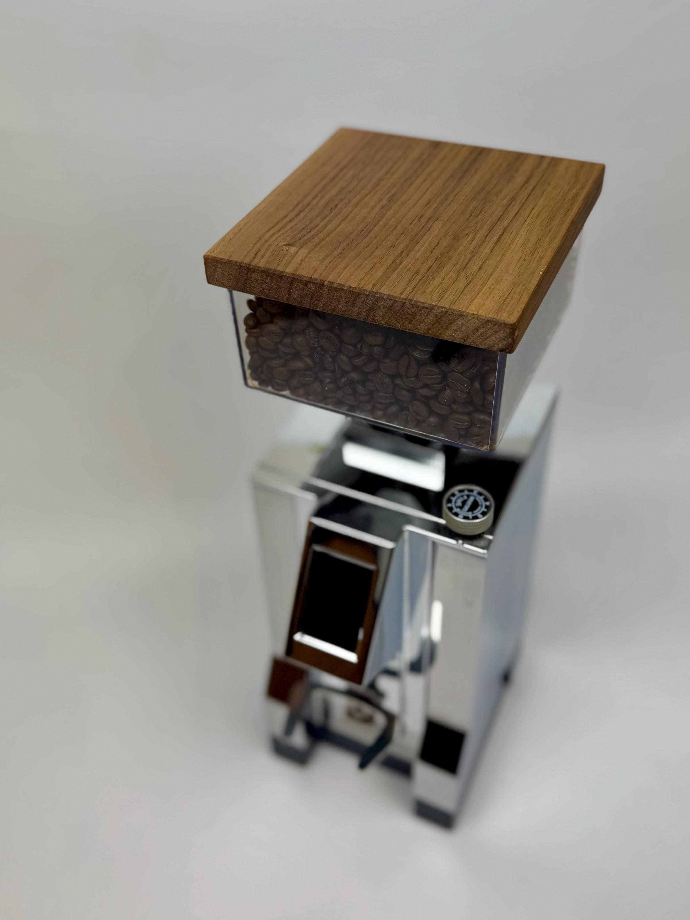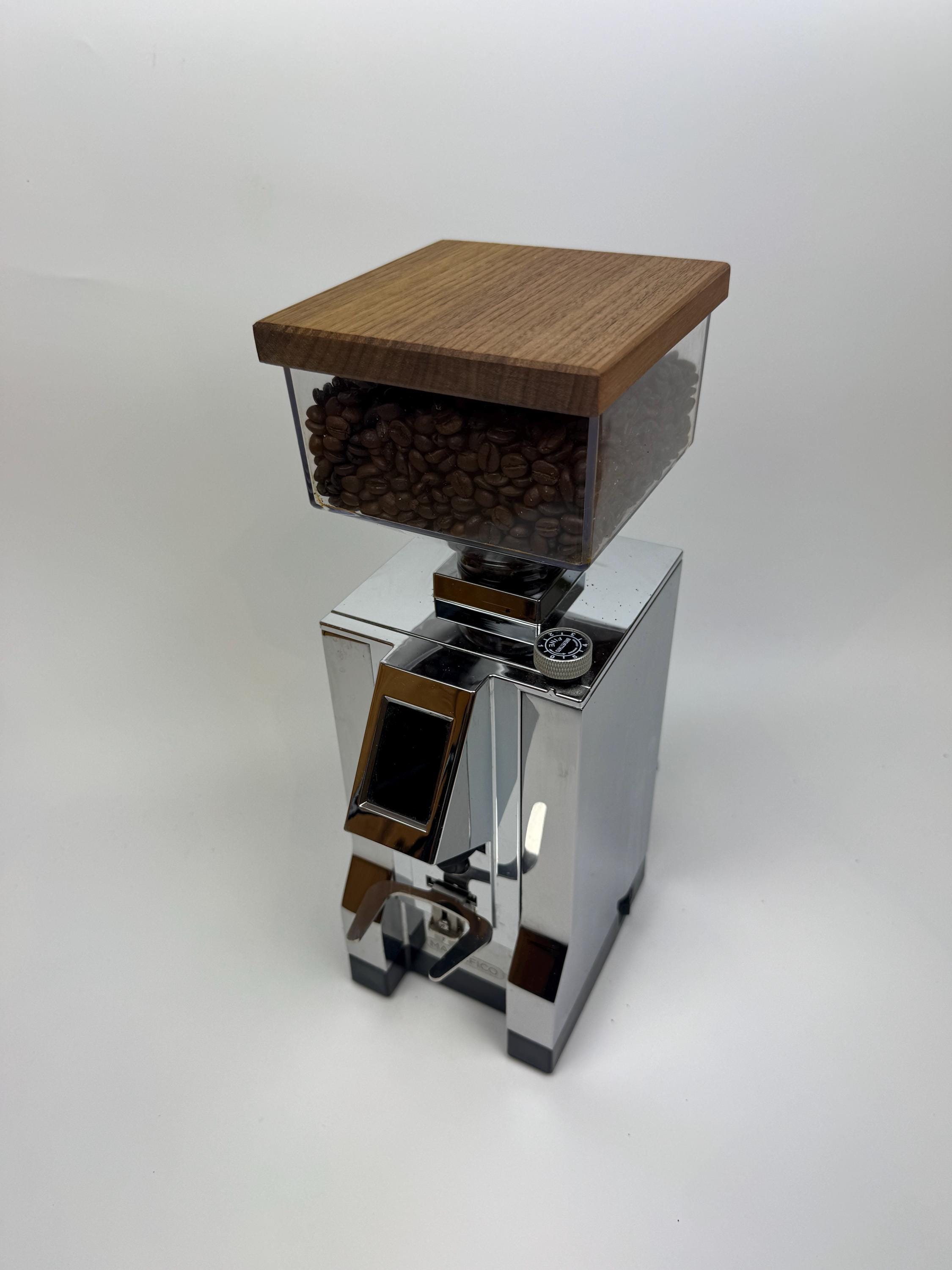 Mit diesem handgefertigten Mühlendeckel aus Nussholz erhält deine Eureka „New Mignon“ ein stilvolles Upgrade, das perfekt in jeden Home-Barista-Arbeitsplatz passt.