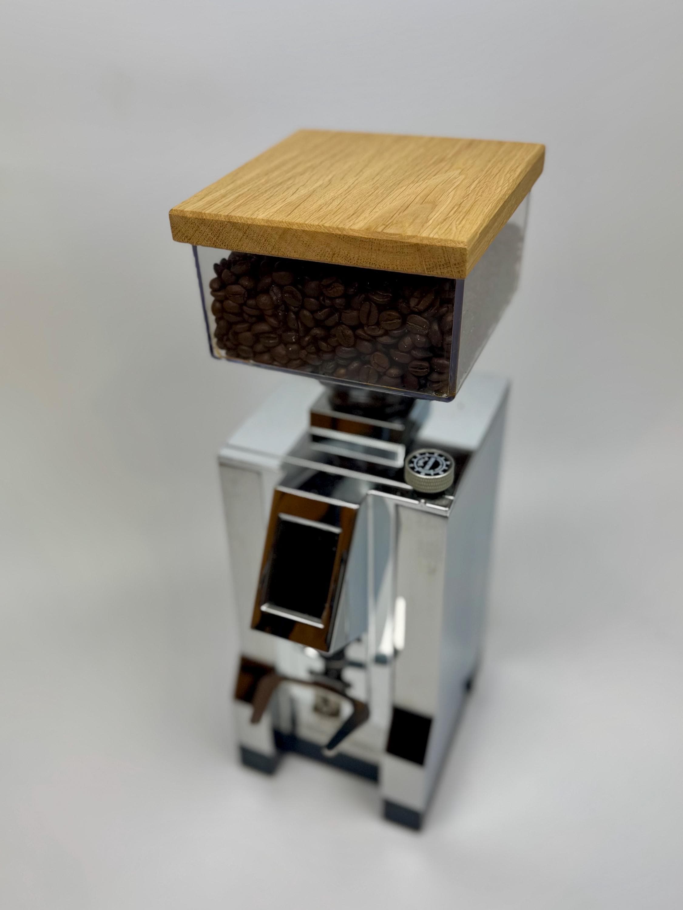 Mit diesem handgefertigten Mühlendeckel aus Eiche erhält deine Eureka „New Mignon“ ein stilvolles Upgrade, das perfekt in jeden Home-Barista-Arbeitsplatz passt.