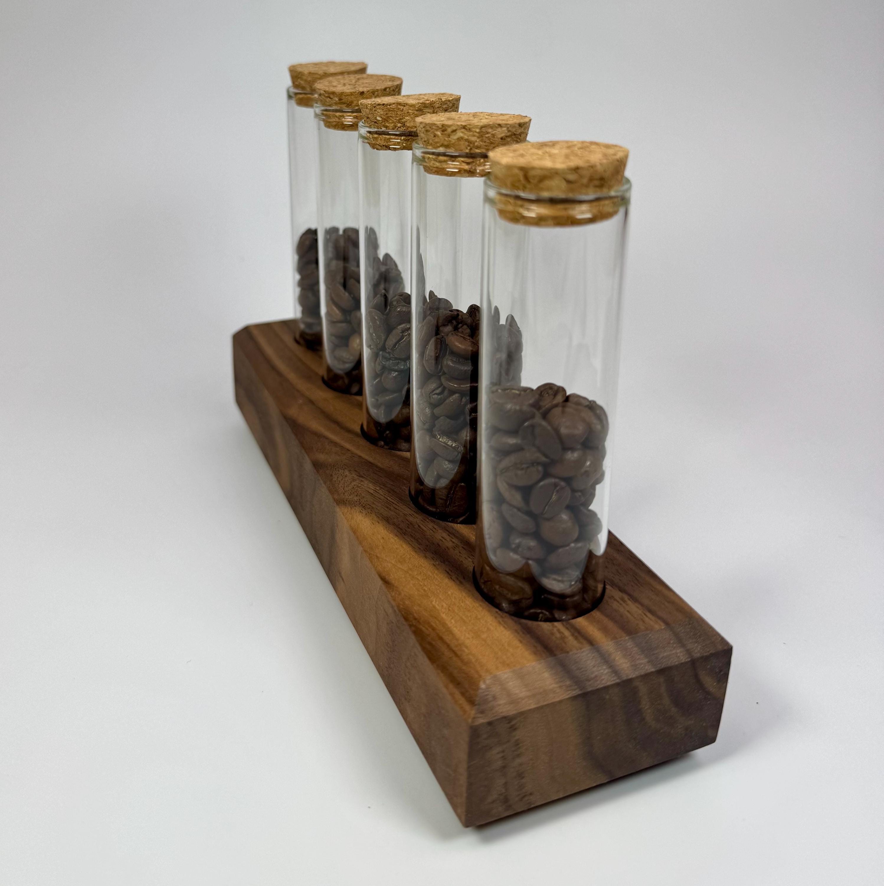 Diese handgefertigte Single Dosing Station aus Nussbaum bringt Ordnung, Stil und maximale Kontrolle in deinen Espresso-Workflow – perfekt für Home-Baristas und alle Specialty Coffee Enthusiasten.