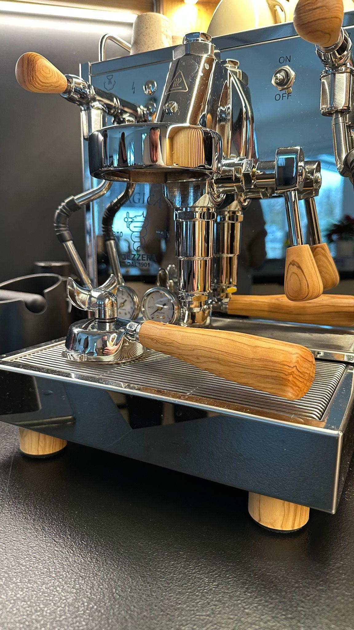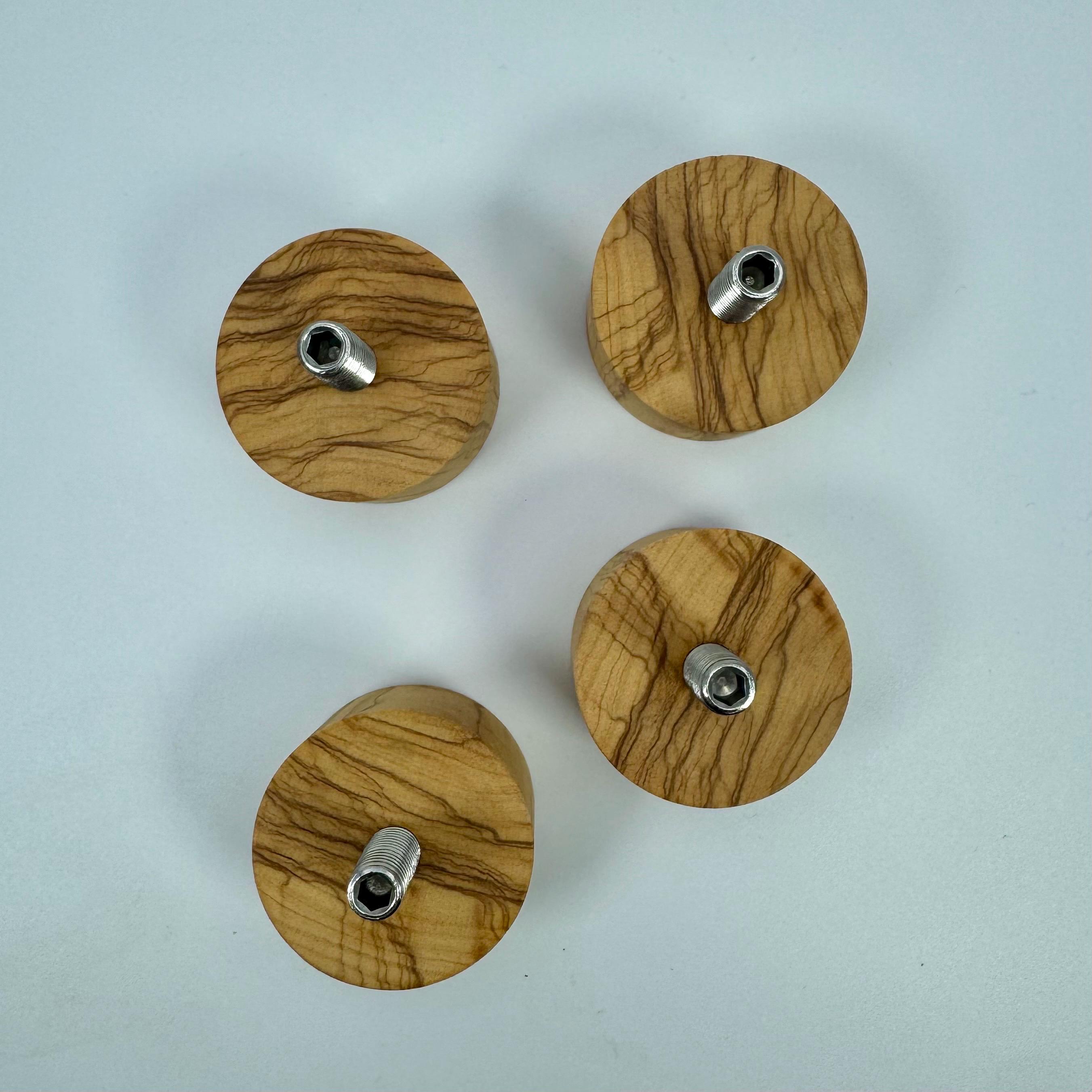 Hier kannst Du Füße für deine Siebträgermaschine, beispielsweise Bezzera Magica / Lelit Bianca aus wunderschönem Olivenholz kaufen. Die Füße sind ca. 40mm breit und 27mm hoch. Ich fertige die Füße aufgrund der geringen Nachfrage nur auf Bestellung, daher haben sie eine etwas erhöhte Lieferzeit. Die Füße haben Edelstahlbolzen M8 mit ~20mm Gewindelänge und können nach Bedarf auch mit M10 Gewinde geliefert werden.