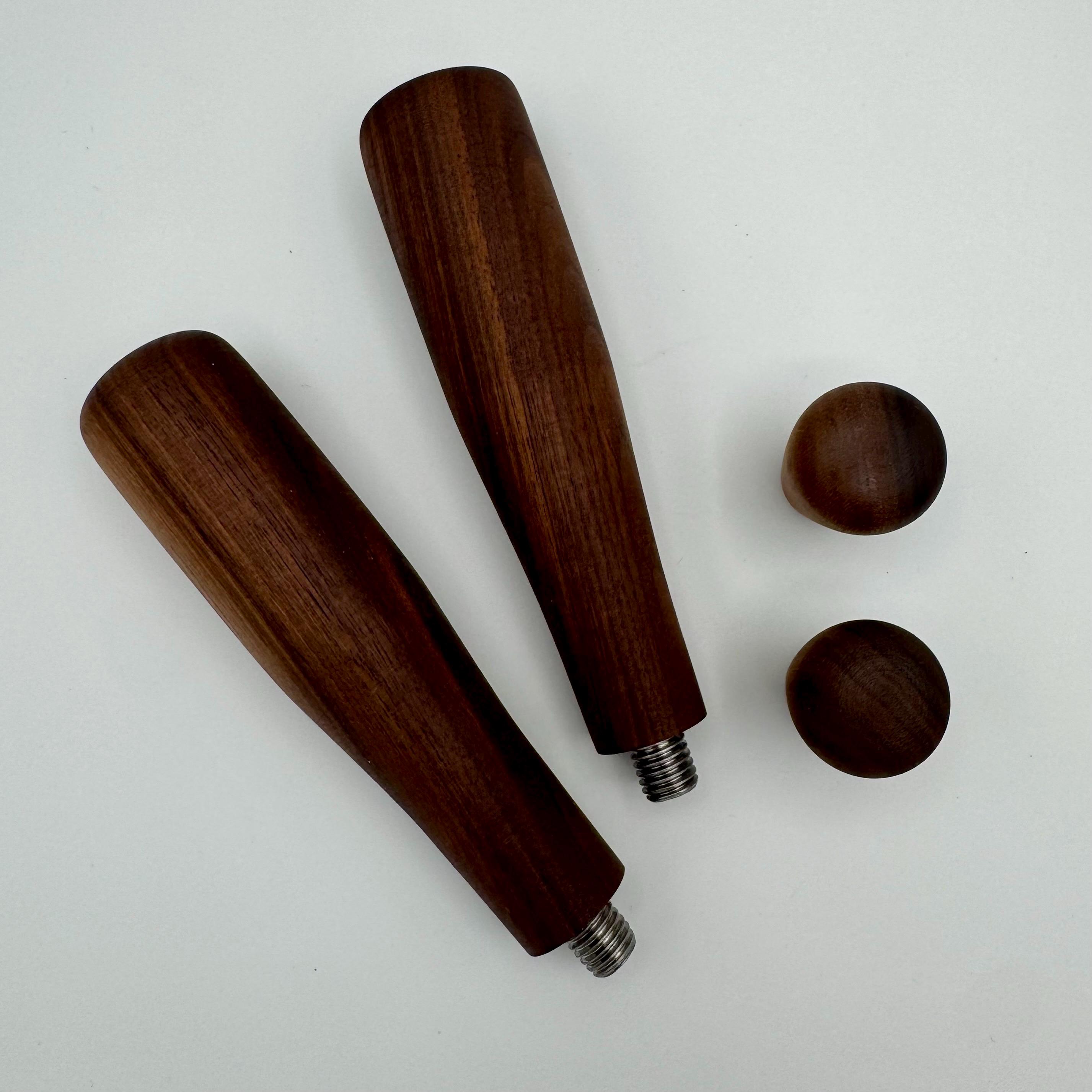 Dieses handgefertigte Holz-Upgrade aus Nussbaum enthält 2 Kipphebelgriffe und ist speziell für Espressomaschinen ohne Bezugshebel konzipiert.